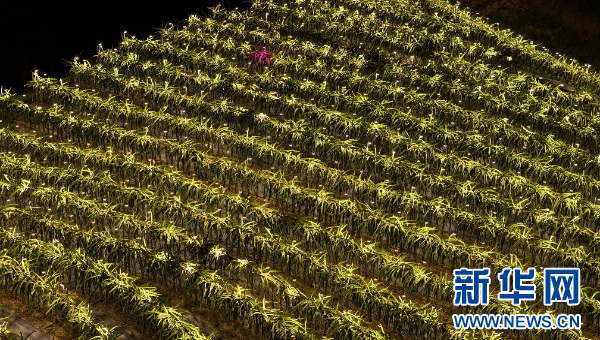 蜜宝火龙果种植基地通过LED灯补光催花。新华网发(刘佳鑫 摄)