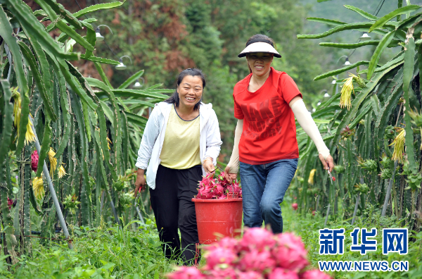 陈乾坤在基地内采收火龙果。新华网 卢志佳 摄