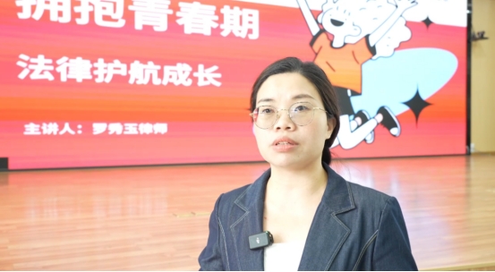女童保护项目广州筑梦团队讲师罗秀玉:“这一个课堂我主要从六个方面去给孩子们讲相关的法律知识。同时,我也给同学们进行分享,让同学们对知识进行一个固化,让他们更能记住自己所学到的知识。未来会有法律陪伴他们更自信地去成长,用法律去保护他们相关权益。”