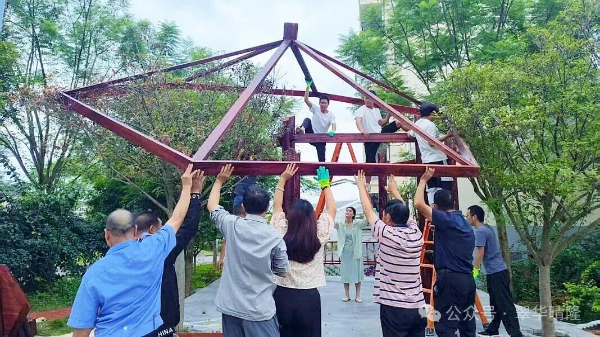 要建亭,先解“三道题”。第一道是“规划关”,驻村工作队先后3次与社区居委会研判、2次前往腾龙街道和相关部门反复沟通,确认路口土地性质、规划要求,最终明确建设可行性;第二道是“资金关”,罗光宗结合社区实际拟定详细建设方案,立即向派出单位汇报居民需求,积极争取帮扶建设资金;第三道是“质量关”,从设计凉亭尺寸到选择建材材质,他邀请社区老党员、有建筑经验的居民共同商议,确保凉亭既实用又耐用。