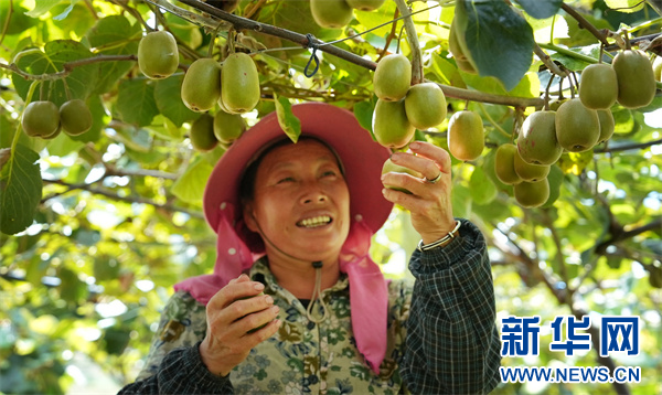 米箩镇果农在采收猕猴桃。新华网 卢志佳 摄