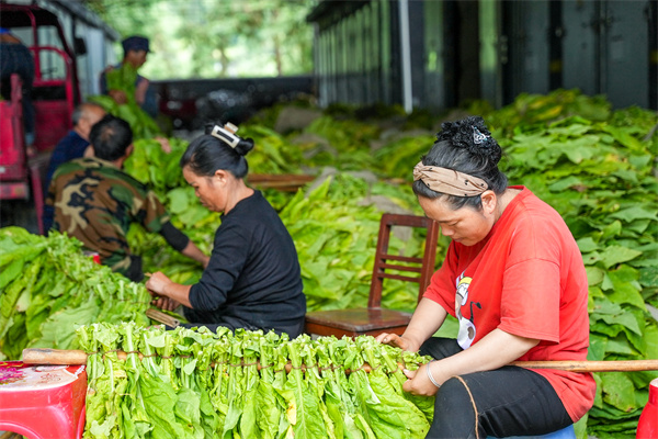 “大家都是乡里乡亲,他们种烟,我们就来采摘编烟。”村民兰成香说,自己平时在河北务工管护西瓜,采烤季回到“家门口”挣钱,一季烤烟结束,三四千元就稳稳当当到手了。