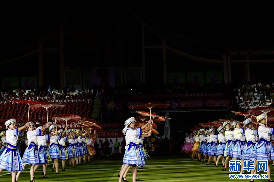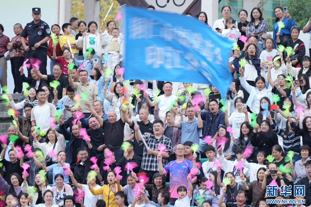 9月21日,贵州省铜仁市印江土家族苗族自治县体育场,观众正在为即将开始的比赛欢呼。新华网发(申逸恺 摄)
