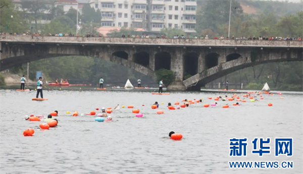 参赛选手进行游泳项目比赛。新华网发(赛事组委会供图)