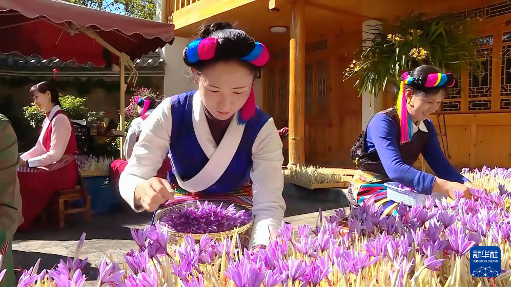 在云南省迪庆藏族自治州维西傈僳族自治县塔城镇其宗村,藏红花每年都如约盛开在腊普河畔,这些红蓝相间的小小花朵,每年为当地400户农户带来1120万元收入。