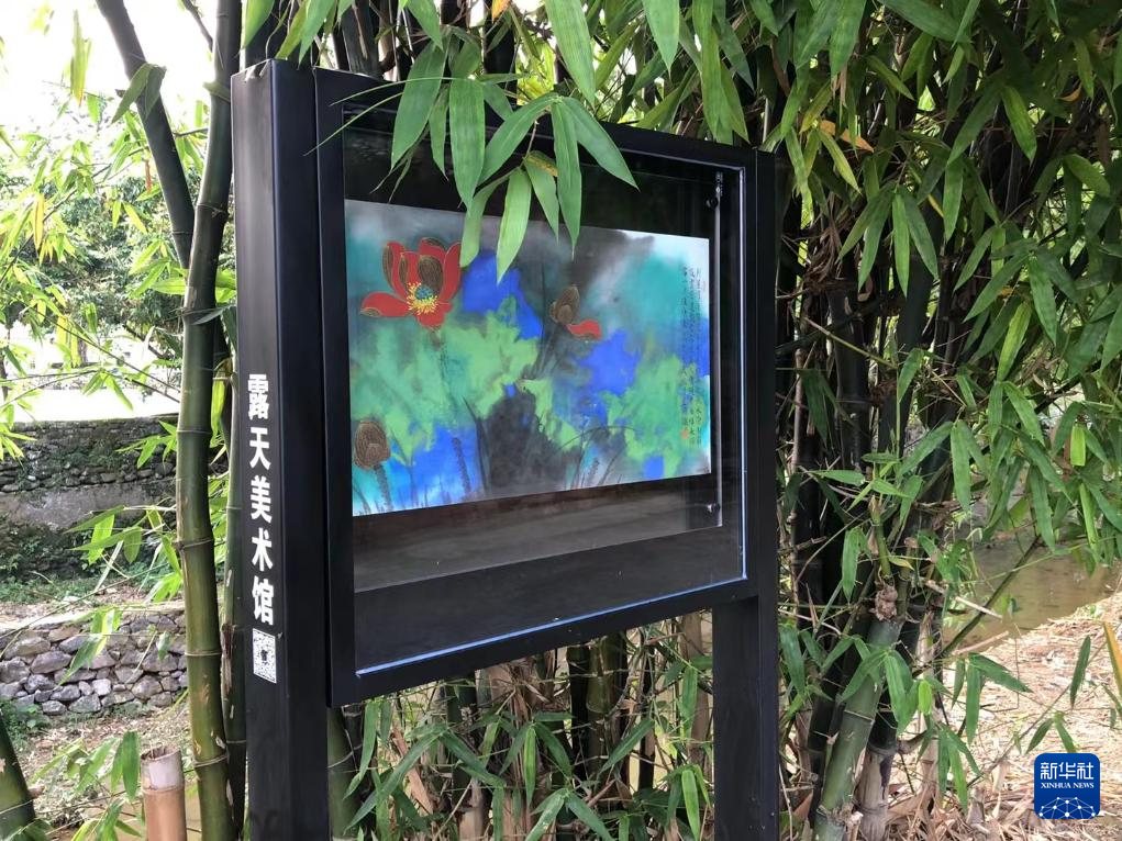 错落有致的古朴民居、青苔遍布的石板小路……走进广西北流市新圩镇河村,一派田园气息扑面而来。一个个装着精美画作的展箱放置在小河畔、树荫下、屋檐下,村民一边欣赏艺术,一边与自然相拥。