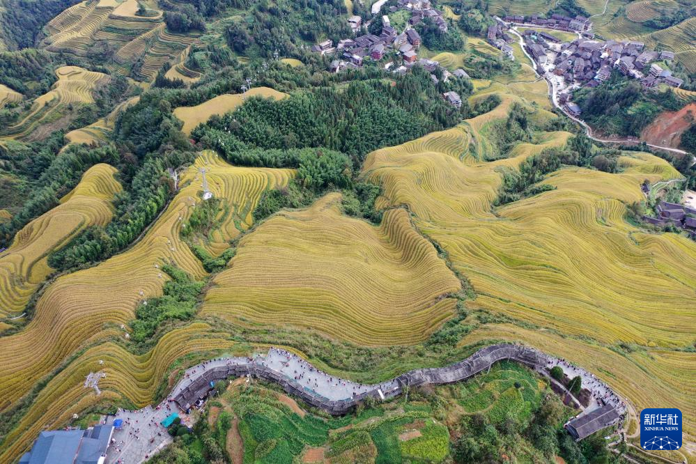 这是广西桂林市龙胜各族自治县龙脊镇秋日的梯田风景。新华社记者 陆波岸 摄