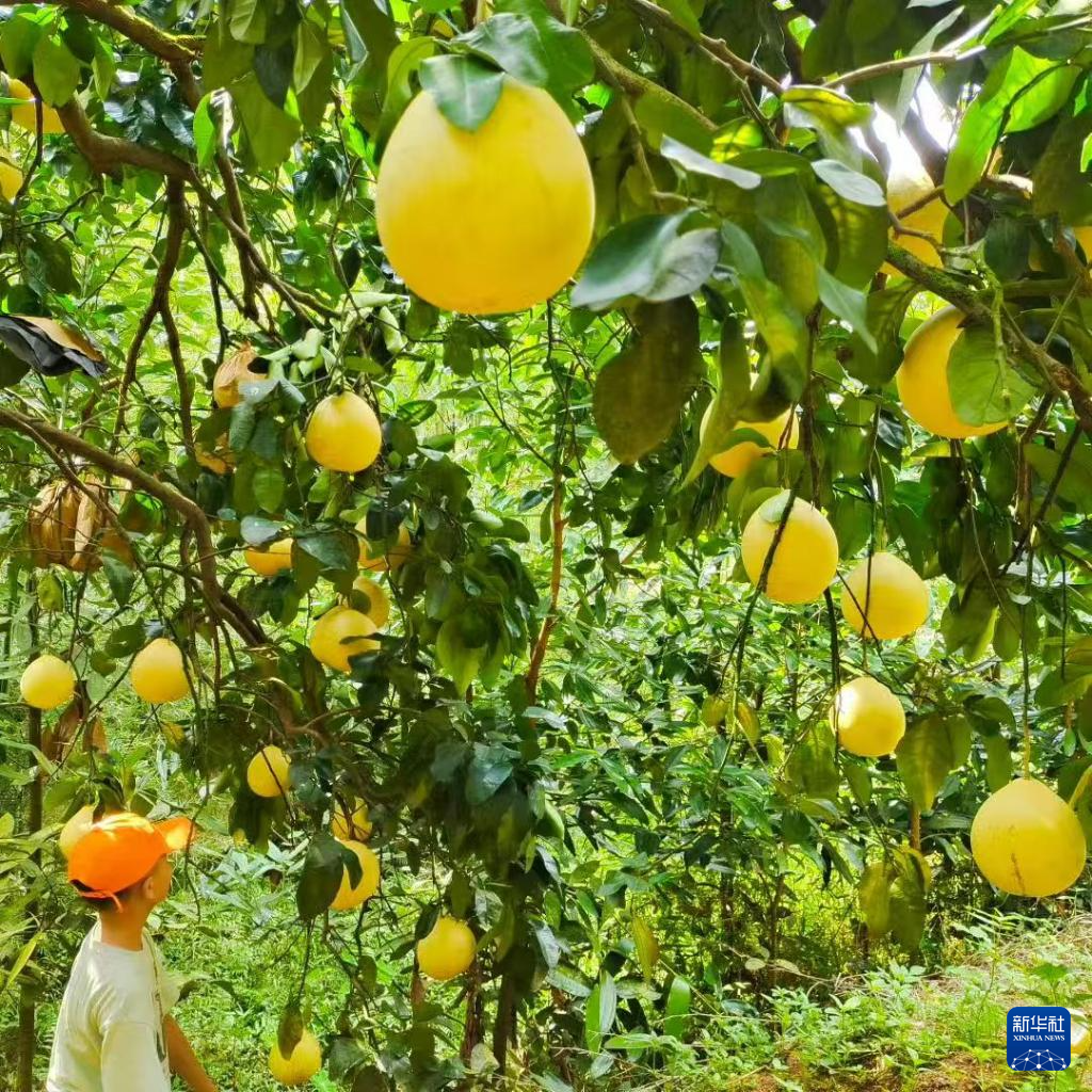 广西容县浪水镇长寿村沙田柚种植农场迎来蜜柚丰收。新华社发(胡玉生 摄)