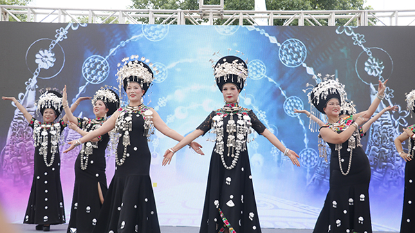 活动在黔东鬼才团的歌曲联唱《不敢带你来贵州》中拉开帷幕。随后,节奏欢快的歌曲《快来和我打老根》唱响,歌词满含松桃人的待客热忱与对朋友的真诚。紧接着,松桃民族服装秀惊艳亮相,银光闪烁间尽显浓郁民族韵味。更令人屏息的是《头断钢片》《踩纸杯》两项绝技表演,让现场观众亲身感受苗家绝技的震撼风采。最后,茶艺表演登场,为这场活动增添了一抹温润底色。