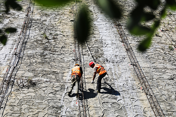 国道352线边坡地质灾害防治工程现场。(杨子依 摄)