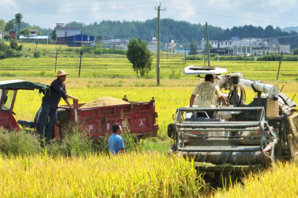 “以前种田靠经验、看天收,如今从选种、育苗到防病、收割,都有农技专家上门指导。今年,我家水稻预计可收6000多斤,刨去成本能赚近万元。”筹洞村种植户何立平一边搬运粮食,一边开心地说。