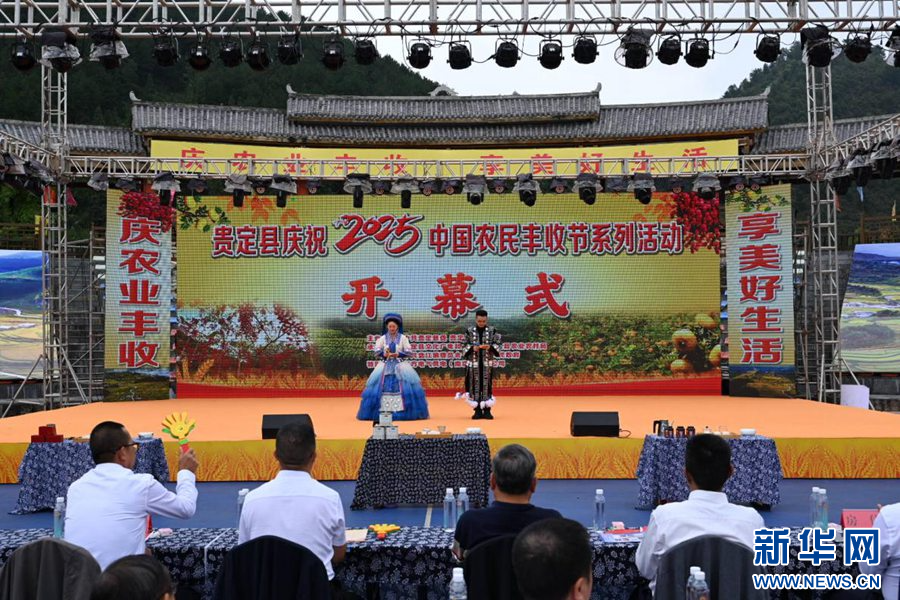 新华网贵阳9月24日电 9月23日,“赛动黔景・美在乡村”2025年贵州省乡村趣味体育运动会总决赛暨贵定县庆祝中国农民丰收节系列活动开幕式,在贵定县“金海雪山”景区举行。千余名“三农”工作先进个人、涉农企业代表及8个镇(街道)干部群众欢聚一堂,共庆丰收、共享喜悦。