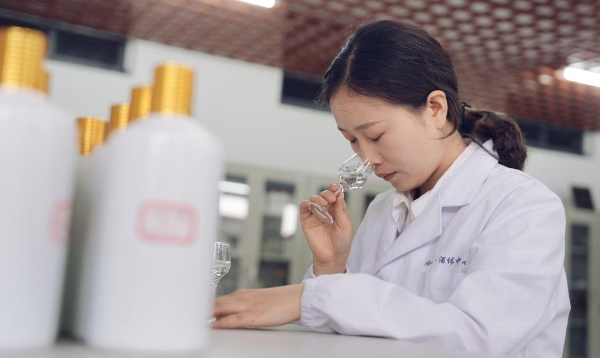 白酒勾调又称“酒体设计”,需将不同年份、不同轮次和不同典型体的上百种基酒,按科学比例调配,使酒体中微量成分达到协调平衡,形成香气优雅、口感醇厚的优质产品。