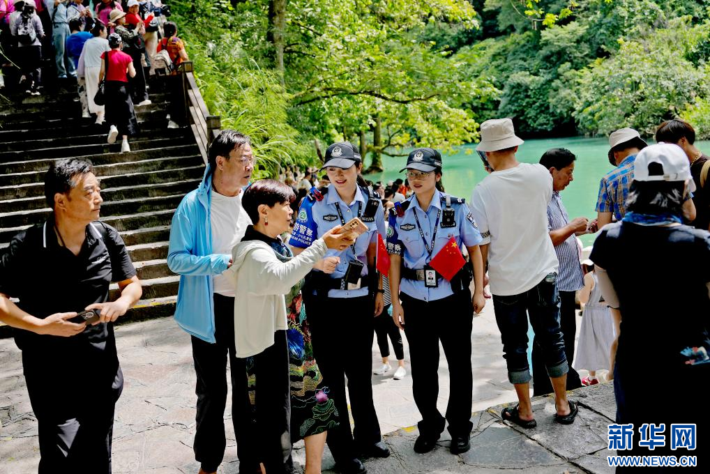 为了提升旅游服务职能,2018年,荔波县成立了全省首支旅游警察女子警队,主要履行大小七孔等景区的日常治安秩序维护、交通安全整治及服务游客等任务,积极探索柔性执法方式。