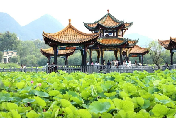 招堤位于安龙县城东北,始建于康熙三十三年(公元1694年),堤的两侧垂柳成行,观荷亭和朱楼画廊数幢,彼此联为一体。每到夏日,安龙县国家湿地公园招堤荷塘约6000亩荷花如期开放,十里长廊荷花连绵不绝,穿行花间,芳香扑鼻。