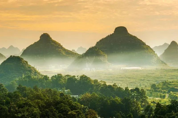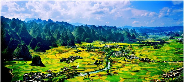 在万峰林,连绵起伏的山峦,金黄的田野河流还有坐落在山脚下古朴的村寨相互映衬,构成了一幅绝美的山水田园画卷。乘坐观光车,沿着环山公路前行,一路上美景不断。除了观光车,还可以租一辆电动车或者徒步,自由地穿梭在峰林之间,感受微风的轻抚,近距离欣赏田园风光与布依族村寨的独特风情。