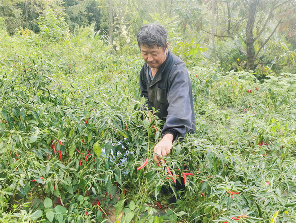 六盘水市烟草专卖局(公司)派驻中坝村原驻村队员王金浪介绍:“工作队为杨仁辉规划了‘养殖+林果+蔬菜+辅助就业’的多元增收体系,帮助他在刺梨管护、辣椒种植等方面下功夫,形成稳定收益来源。”