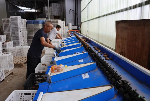贵州辉腾农业有限公司从2015年起步以来,通过收购周边群众的修文猕猴桃和金秋梨,帮助果农解决秋收“燃眉之急”的同时,自身也在不断成长壮大,如今已拥有日产能4万斤的猕猴桃分选线、一次性可储存120万斤的冷库以及自己的电商运营团队。