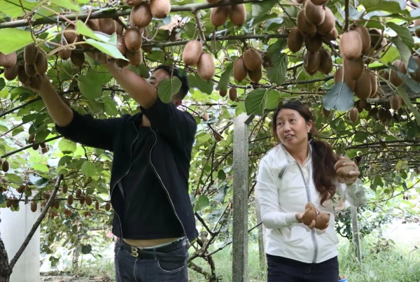 “今年,我们折溪村猕猴桃长势特别好,今年是个大丰收年,猕猴桃产量大概在1500万斤左右。销售这方面,我们与村支两委联系外地老板,主要是陕西老板,来对猕猴桃进行收售,另一方面通过电商,发动我们村里面的电商能手、致富能人,帮助农户销售猕猴桃,通过产销对接,目前市场形势一片大好。”折溪村驻村第一书记邓华权介绍。(姜继恒 李云 李宇)