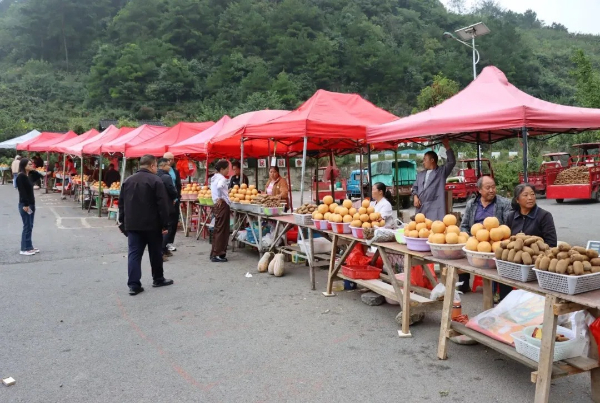 折溪村梨园、猕猴桃园,一派喜悦的丰收景象,村民们正忙着采摘缀满枝头的累累硕果。当地政府划定的临时销售摊位上,摆满碗口大小的金秋梨和圆柱形的“贵长”修文猕猴桃,前来买果的游客络绎不绝。