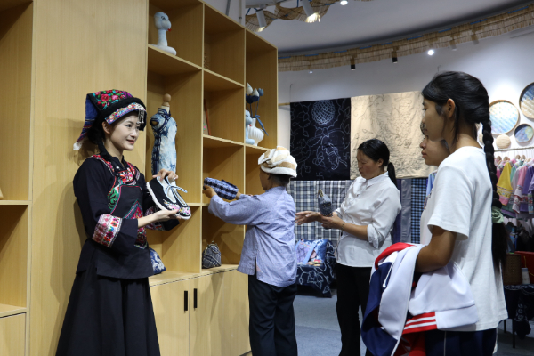 “为了迎接国庆、中秋的到来,我们结合‘享钓鱼 趣罗甸’2025贵州·黔南(罗甸)秋季文体旅活动,推出了为期8天的非遗文创产品、特色农旅产品展示展销活动。”罗甸县文化广电和旅游局非遗中心主任邹莹介绍道,罗甸县有72项非物质文化遗产,其中以土布制作、扎染等工艺最具代表性。除此之外,为增强观众的体验感,县文化广电和旅游局还在县文化馆一楼开展扎染手工体验活动,让前来参观的游客能亲自体验扎染手工,体验非遗的魅力。