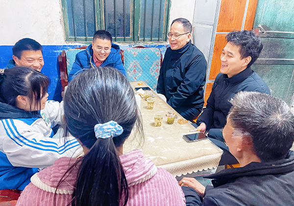 庾用剑(右三)在沿河挂职期间,带着教师队伍开展家访。