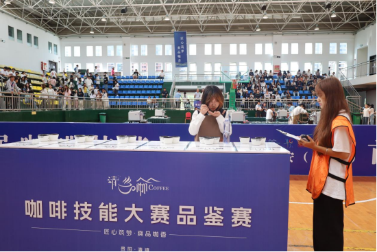 贵阳贵安(清镇)首届咖啡技能大赛品鉴赛比赛场景。