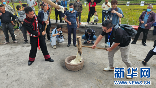 采风团随后走进“碧水长歌”田园综合体,一幅“农旅康养融合”的画卷徐徐铺展。作为七星关乡村振兴重点项目,这里以“一河十寨”为骨架,串联国家森林公园白马山林场与两个3A级景区,通过“三清五治”改善人居环境的同时,同步推进高标准农田建设与特色产业培育。采风团在田间体验割稻谷、打糍粑的过程中,清晰看到项目“三生同步(生产、生活、生态)、三产融合(一二三产业)”的路径:以绿色农业为基底,延伸出农旅休闲、研学旅行业态,更以中医药康养为核心特色,实现生态资源向文旅资产的高效转化,让曾经交通不便、产业单一的区域,蜕变为乡村振兴示范点。