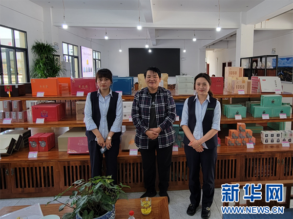 图为邮储银行工作人员走访贵州黄红缨茶业有限公司。新华网发