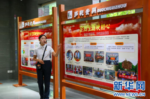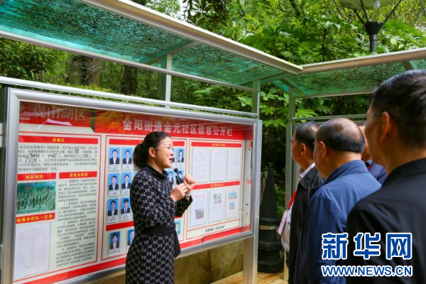 观山湖区金元社区工作人员介绍情况。新华网发(侯竣疆 摄)