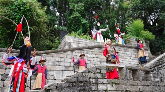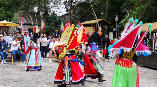 活动当天,20余辆自驾车、60余名游客首先来到云峰屯堡景区,参观云山屯古村落,欣赏独具特色的屯堡石头建筑群落。而沉浸式实景演绎《跟着九哥逛屯堡》更是让游客仿佛穿越时空,回到了六百年前的屯堡生活场景。