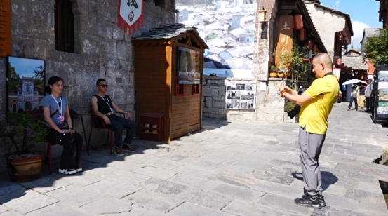 网红“小北旅行记”博主刘清华:“今天上午我们去了云山屯,当地的风景也是非常美丽,且有非常厚重的历史底蕴。这次我跟我的小伙伴们一起用我们的镜头把历史文化给记录下来了。接下来我们来到了旧州古镇,在这里我们也看到了很多复古的建筑,希望能够通过我们的镜头让更多的人知道安顺的美丽。”