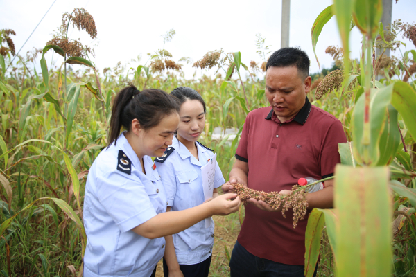 七星关区税务局税务干部深入高粱种植基地了解高粱生长情况。(郑婷 摄)