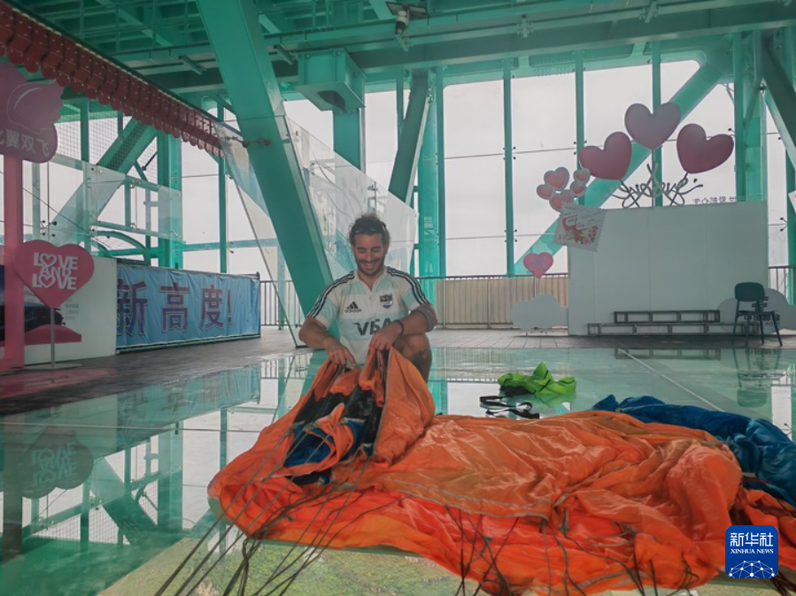 9月29日,意大利选手比多吉亚在整理飞行装备。新华社记者 吴思 摄