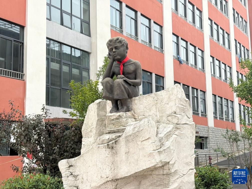贵州息烽县振中小学里的“小萝卜头”雕像。新华社记者 李凡 摄