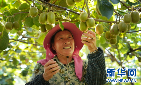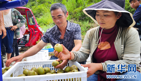 米箩镇果农在采收猕猴桃(9月9日摄)。新华网 卢志佳 摄