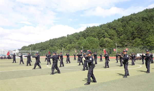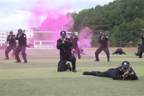 演练现场,261名新警学员按照五个区队依次进行队列会操、单警装备使用、徒手攻防、小单元战术作战、枪械战术等训练课目演练。全体参训学员精神士气高昂,动作整齐划一,警容风纪严整,充分展现新时代司法行政人民警察良好精神风貌和过硬作风。