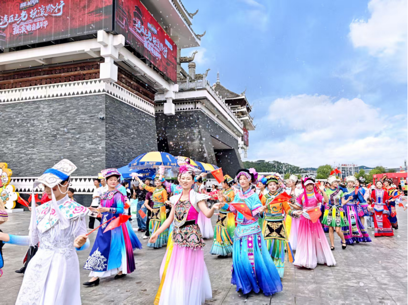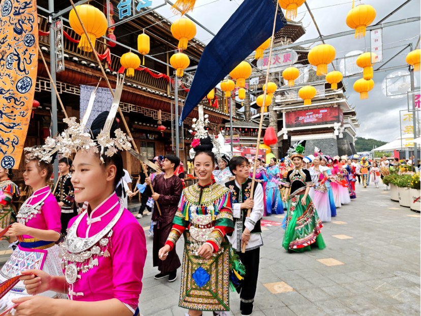 苗银叮当、侗歌绕梁、布依锦绣翻飞……10月1日,欢快、团结的气息在贵阳市多彩贵州城弥漫升腾,贵旅集团在此举行的民族大巡游精彩启幕,身着各民族传统服饰的表演者们载歌载舞,与市民游客一道向世界呈现“主客共享、近悦远来”的最炫民族风。