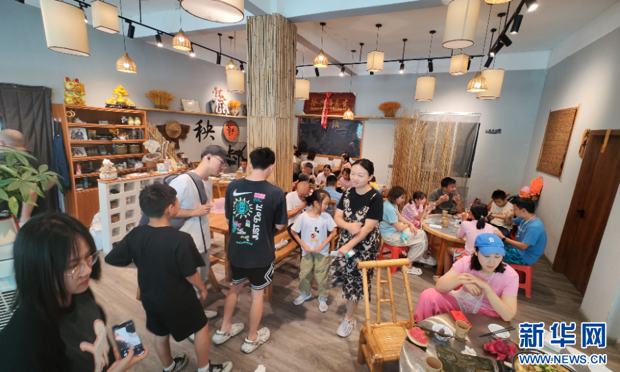 返乡大学生黄秀秧创办的农家乐暑期客流不断。新华网 卢志佳 摄