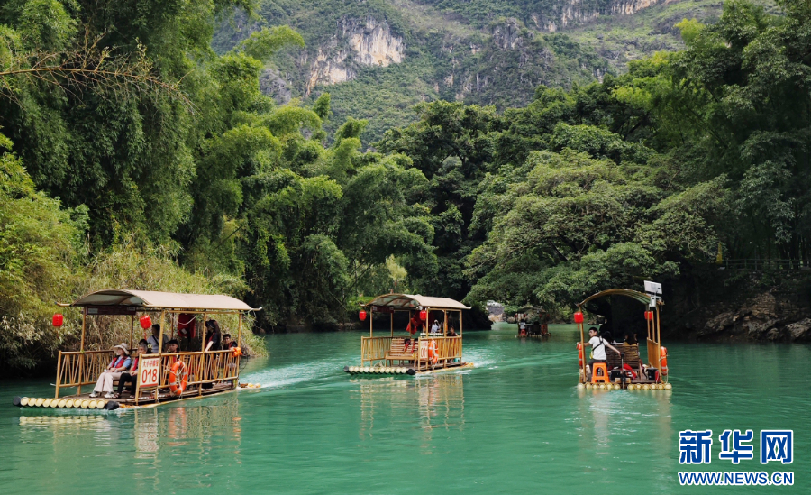 游船穿行在罗甸大小井景区内。新华网 卢志佳 摄