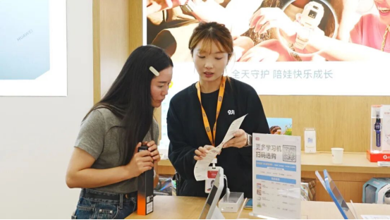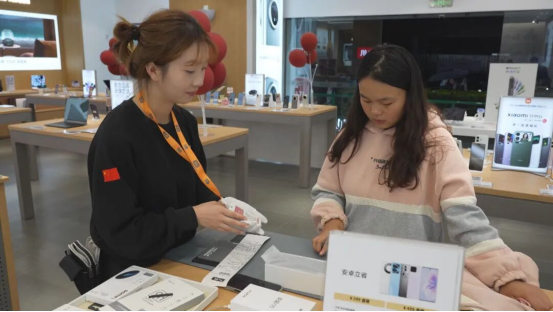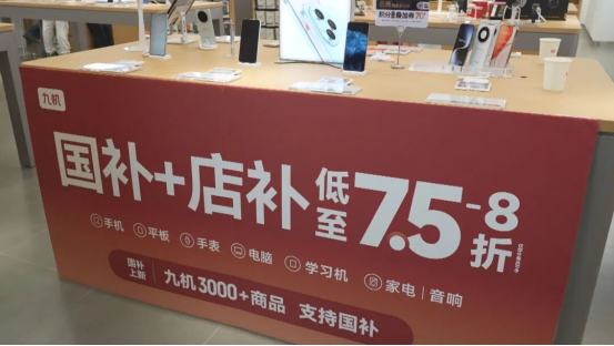 在西秀区九机新天地店,节日期间的促销氛围格外浓厚。醒目的促销展板和随处可见的国补政策宣传标识,吸引着不少消费者驻足。大家在展台前咨询产品信息、体验新品功能,现场人气旺盛。