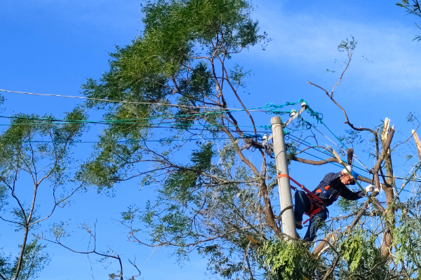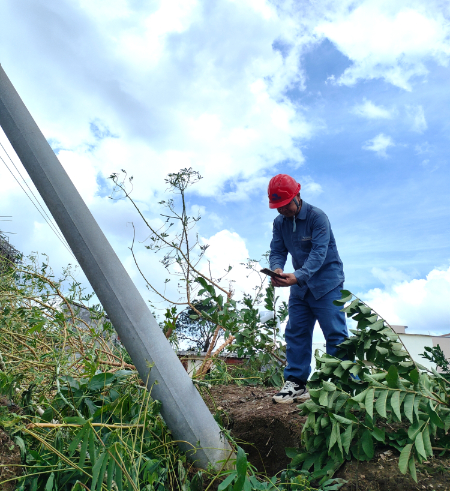 稍作休整后,10月7日,抢修队伍立即按照前线指挥部部署投入战斗,负责10千伏新二线0.4千伏及以下线路的勘损与抢修工作。他们顶风冒雨穿梭在街巷间,对丰九百2号变等12个台区公变逐一开展细致勘损,随后针对蔡队公变等6个台区的故障,高效开展电杆校正、断线驳接、树障清理等作业。截至当日,已有600余户居民恢复正常用电,为群众生产生活提供了坚实电力保障。