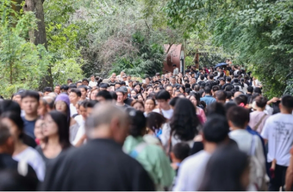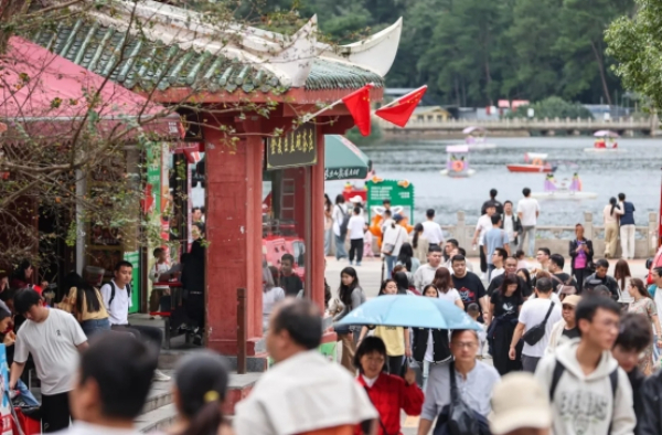 黔灵山公园动物园内,星宝、海浜两只大熊猫凭借萌态圈粉无数,黔灵湖畔全新投用的百艘电动游船和临湖非遗小吃市集更让游客体验升级,10月6日的“湖光山色”双节湖畔音乐会,让泛舟赏曲成为假日里的惬意选择,据悉,双节假期黔灵山公园日均接待游客超10万人次,累计接待游客62.97万人次,同比增加21%,累计营业收入约192.5万元。