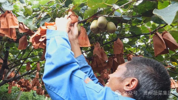 除此之外,农发猕猴桃公司注重的标准化生产在提升果品质量和产业效益方面也发挥着核心作用。农发猕猴桃公司与贵州大学农学院开展深度合作,由龙友华教授团队提供全产业链技术支撑,围绕栽培、授粉、浸果、冰雹灾害应急管理、套袋管理、施高钾肥、采果后管理等关键环节制定了7套标准化技术方案。技术人员驻村指导,累计开展抹芽、疏果、套袋、施肥等现场培训80多次,培训1600多人次,实现了从种植到采收的全程标准化管控。