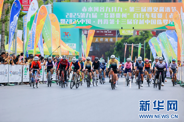 新华网贵阳10月12日电(卢志佳)10月12日,2025第九届“多彩贵州”自行车联赛(赤水站)暨2025中国·丹霞第十三届穿越中国侏罗纪自行车赛于“中国丹霞”世界自然遗产地遵义赤水市鸣枪开赛。本次赛事也是赤水河谷九月九·第三届遵义酱酒节的配套活动之一。