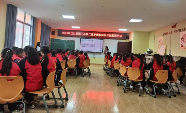 图为江口第二小学2025年二星梦想教师展示课教研活动现场