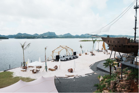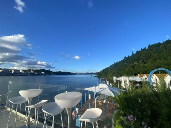 在业态上,民宿已成为串联体验的“枢纽”:站街镇杉树村的“古埃蒙”民宿内,360°湖景咖啡屋飘散着“暮光森林”特调的香气,周末的落日音乐节让晚风裹挟着旋律,管家杨莲设计的“蜡染主题房”更是荣获全省技能大赛金牌;不远处的候鸟营地将沙滩、面包窑与咖啡屋巧妙结合,罗望子美式咖啡配湖景成为年轻人的“出片圣地”。如今,“民宿+”已形成成熟业态:加美食有烧烤农家菜的烟火气,加活动可体验滑翔伞、农耕采摘、篝火晚会,加创意可体验陶艺苗绣,加康养适合中老年长住,加景区联动天河潭、青岩古镇推出联票,全市26家乡村咖啡店今年已接待3.8万人次,“悬崖喝咖啡”成为新标签。