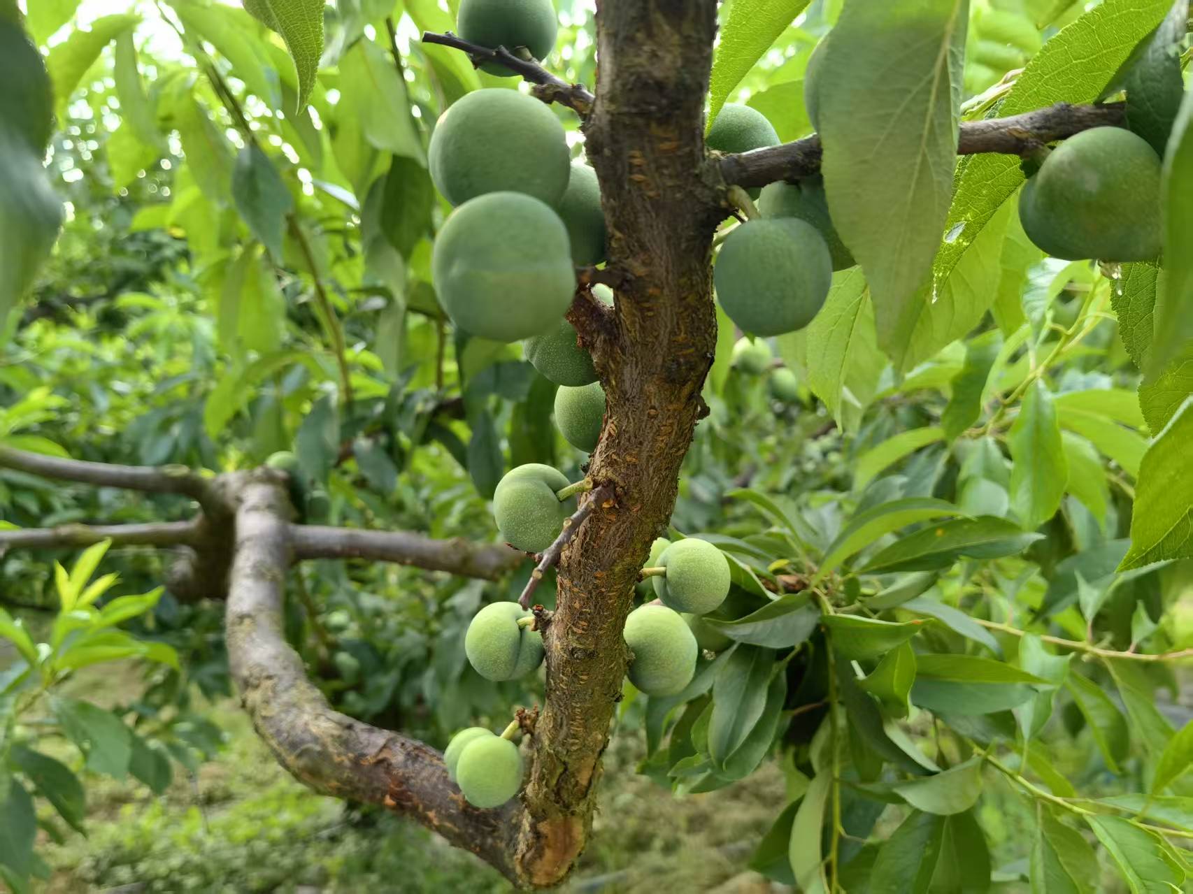放眼望去,视线所到之处,是漫山遍野的绿,翠色的李子树随着山势连绵起伏,不时迎着山风摇曳。