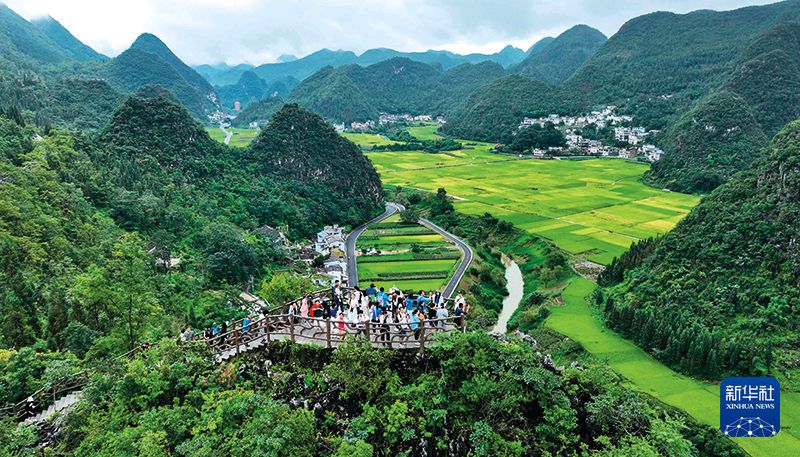 游客在贵州省黔西南布依族苗族自治州兴义市万峰林景区观光游览(2023年8月25日摄)。新华社发(袁福洪 摄)