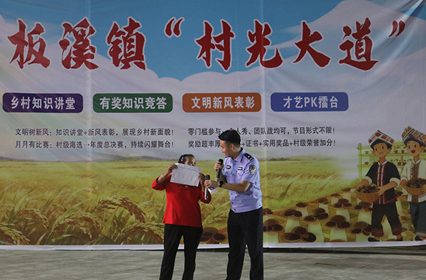 知识宣讲入脑入心。“村光大道”突破传统单向灌输的宣教模式,创造性地将知识普及、技能培训与文艺活动深度融合,打造“寓教于乐”智志双扶新模式。法律顾问任迪运用本地方言,以“摆龙门阵”的方式讲解婚姻家庭、土地承包等法律知识;县公安局民警王嘉怡用“土言土语”揭秘诈骗套路,教村民守好“钱袋子”。每个宣讲环节均设置“有奖竞答”,村民们踊跃参与,在轻松氛围中掌握知识。这种“文艺+宣讲”的模式,变“填鸭式”灌输为“互动式”学习,让党的创新理论和惠民政策如春风化雨般滋润群众心田。